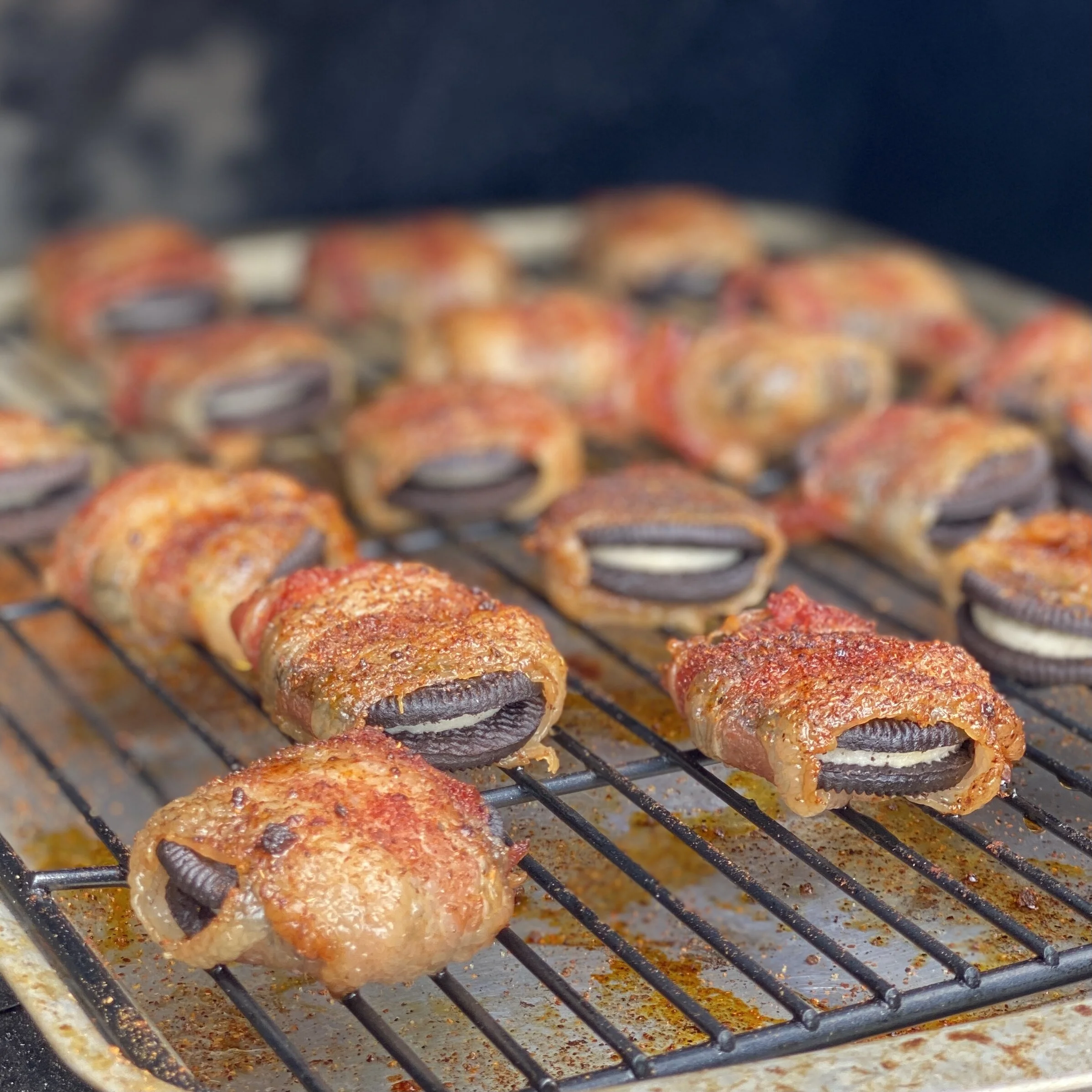 Smoked Bacon Wrapped Oreos Sep 5 Written By LaCretia Johnson They are as good as they sound… I never know what my blue eyed boy is going to cook. Today was no different. View fullsize View fullsize View fullsize Blazerecipesdesserts LaCretia Johnson http://www.morninglory.farm